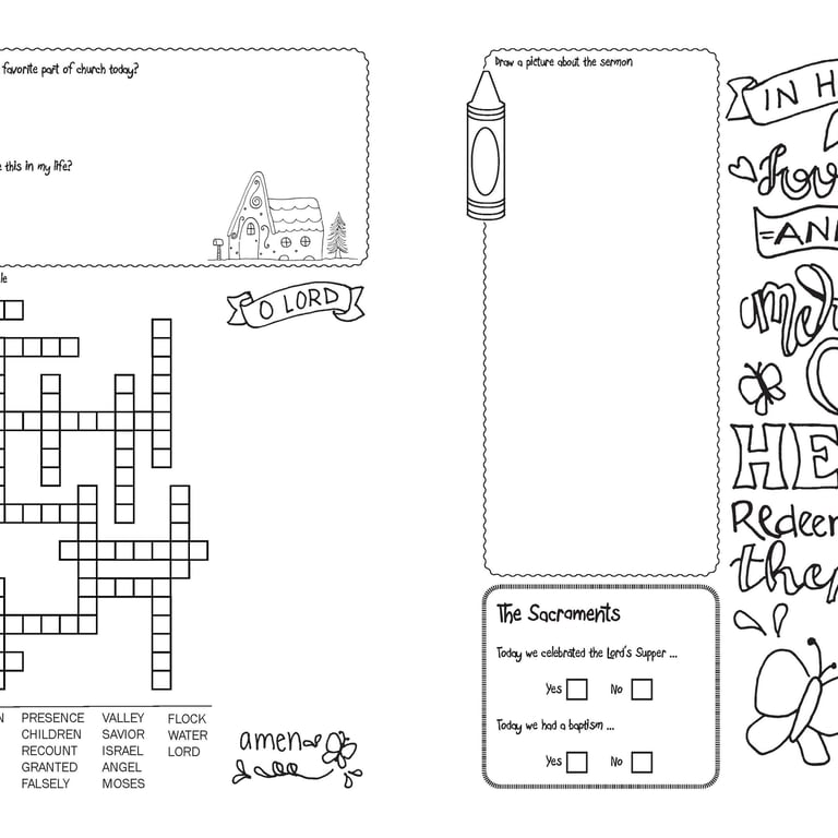 Children meet during the worship service for a short Sunday school class. They begin worship with their families in church and are dismissed before the sermon, rejoining their families once again after church for a blessing during communion.
